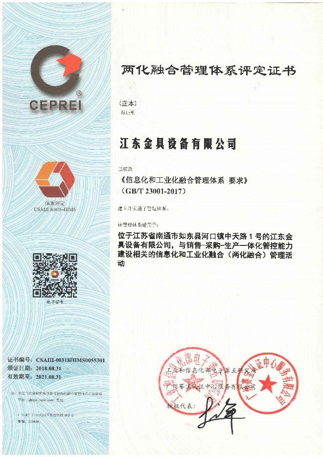 江东金具顺利通过工信部两化融合管理体系认证